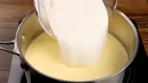 - Gradually add the sugar, salt, and flour to the mixture. Keep whisking until thoroughly combined. Continue to cook the mixture, stirring often but occasionally until it thickens and reaches a custard-like consistency. This process ensures a smooth, creamy pudding texture.