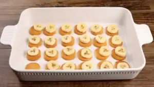 - Slice the bananas and arrange them over the cookie layer, creating a delightful fruity contrast