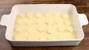 - Spoon a generous layer of the prepared pudding mixture atop the bananas, creating a harmonious trinity of flavors.