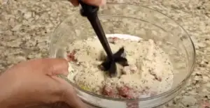 3. Mix well but don’t overmix. Over-mixing the meat will make it tough.