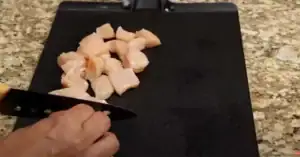 - Clean and pat dry the chicken breasts. Slice the chicken into small, bite-sized pieces and set aside.