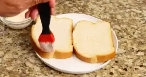 - Coat both sides of each slice of Texas toast with mayonnaise. Set the slices aside — this will give them a golden, flavorful crust when toasted later.