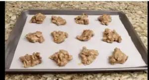 Prepare a cookie sheet lined with parchment paper. Using a large spoon, carefully place spoonfuls of the praline mixture onto the parchment paper, allowing them to set and cool.