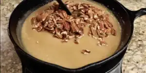 Once the sugars have dissolved, add the salt, vanilla extract, and pecans to the mixture, stirring gently until the aroma of toasted pecans fills the air and the mixture starts to thicken.