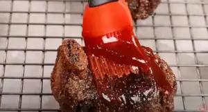 Take the ribs out of the oven and brush them with your barbecue sauce. Switch your oven to a low broil setting, return the ribs to the oven, and broil for 3-5 minutes to allow the sauce to caramelize and get sticky.
