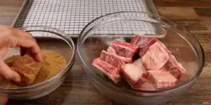 - Place the short ribs in a large bowl. Drizzle them with canola oil and liquid smoke, then toss until the ribs are fully coated. Generously rub the seasoning mixture onto each rib, making sure they’re well covered on all sides.
