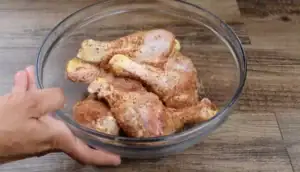 Generously season your chicken legs all over with the seasoning mixture. Make sure that all of your pieces are evenly coated with the seasoning mixture.