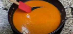 - In a pan over medium-low heat, add Frank’s RedHot sauce and butter. Stir continuously until the sauce is fully combined and smooth.