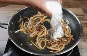 - Melt butter in the pan. Sprinkle in flour and whisk, cooking 2–3 minutes until golden and toasty (this is flavor).